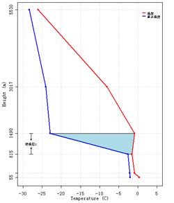 地基雷達觀測結(jié)果也顯示,京津冀及周邊地區(qū)大氣邊界層高度從2月25日以來總體持續(xù)下降,26日0時到27日0時邊界層高度低于700米的區(qū)域占比超過60-80%,邊界層高度低于500米的區(qū)域占比達10-30%,不利于大氣污染物擴散(圖3)。北京探空資料顯示27日8時1400米以下有逆溫層,抑制污染物垂直擴散。長時間的小風、高濕疊加逆溫等不利氣象條件,導致污染不斷積累和二次轉(zhuǎn)化(圖4)。