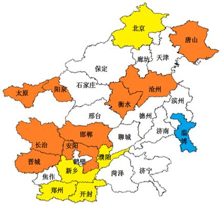 截止2月27日,京津冀及周邊地區(qū)共30個城市啟動預警響應,其中15個城市發(fā)布橙色預警,14個城市發(fā)布黃色預警,1個城市發(fā)布藍色預警?!?+26”城市中有15個城市發(fā)布重污染天氣應急響應,9個城市發(fā)布橙色預警,5個城市發(fā)布黃色預警,1個城市發(fā)布藍色預警(圖8)。