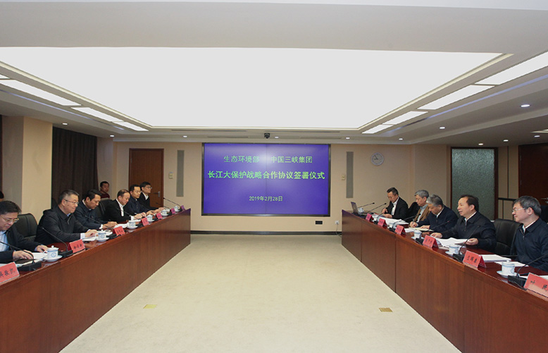 2月28日,生態(tài)環(huán)境部與中國長江三峽集團有限公司在京簽署長江大保護戰(zhàn)略合作協(xié)議。生態(tài)環(huán)境部黨組書記、部長李干杰與三峽集團公司黨組書記、董事長雷鳴山出席協(xié)議簽署儀式。