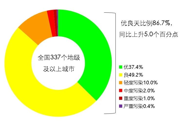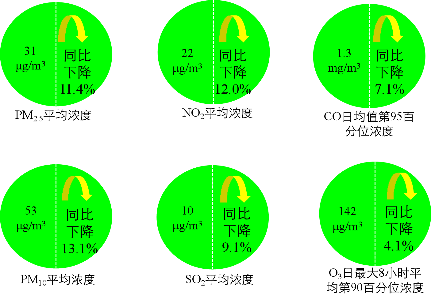 1-8月,全國337個地級及以上城市平均優(yōu)良天數(shù)比例為86.7%,同比上升5.0個百分點(diǎn);PM2.5濃度為31微克/立方米,同比下降11.4%;PM10濃度為53微克/立方米,同比下降13.1%;O3濃度為142微克/立方米,同比下降4.1%;SO2濃度為10微克/立方米,同比下降9.1%;NO2濃度為22微克/立方米,同比下降12.0%;CO濃度為1.3毫克/立方米,同比下降7.1%。