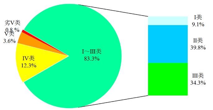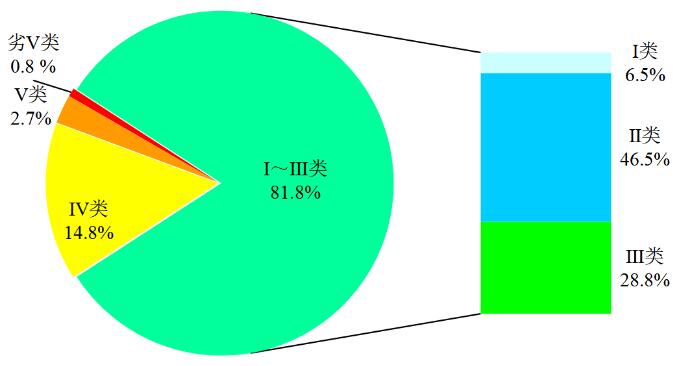 圖1 2020年10月全國(guó)地表水水質(zhì)類別比例