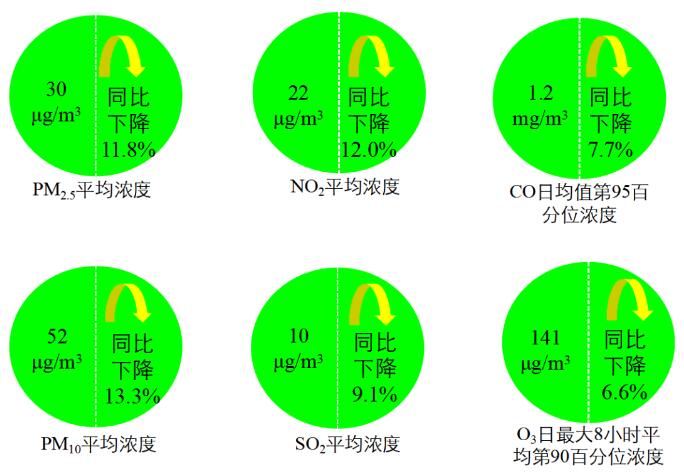 1-10月,全國(guó)337個(gè)地級(jí)及以上城市平均優(yōu)良天數(shù)比例為87.7%,同比上升5.5個(gè)百分點(diǎn);PM2.5濃度為30微克/立方米,同比下降11.8%;PM10濃度為52微克/立方米,同比下降13.3%;O3濃度為141微克/立方米,同比下降6.6%;SO2濃度為10微克/立方米,同比下降9.1%;NO2濃度為22微克/立方米,同比下降12.0%;CO濃度為1.2毫克/立方米,同比下降7.7%。