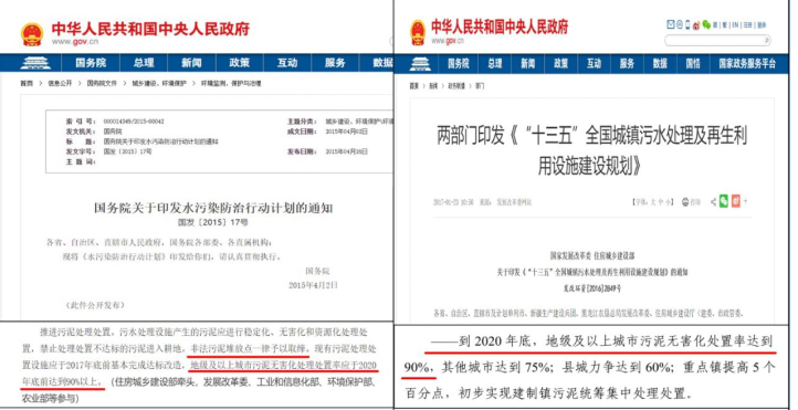 圖1《水污染防治行動計劃》《“十三五”全國城鎮(zhèn)污水處理及再生利用設施建設規(guī)劃》要求地級及以上城市污泥無害化處置率應于2020年底前達到90%以上