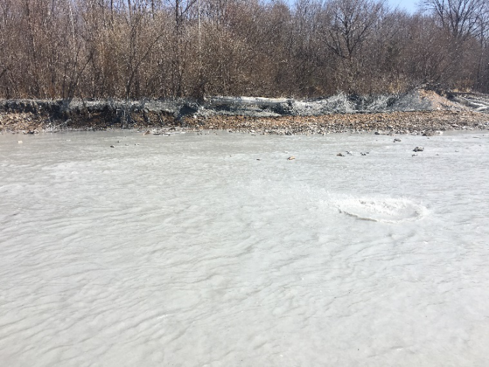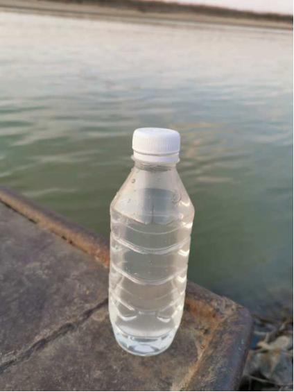 4月10日18:00,在蘭西橋投藥點(diǎn)下游3公里處,生態(tài)環(huán)境部工作組專家取樣發(fā)現(xiàn),河水清澈,不見明顯絮體。
