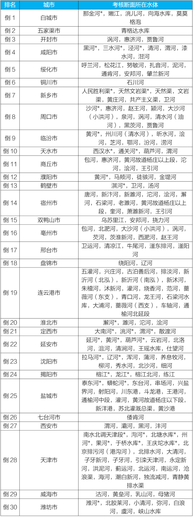 2023年1—3月國家地表水考核斷面水環(huán)境質量變化情況排名后30位城市及所在水體