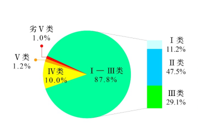 圖1 1—6月全國(guó)地表水水質(zhì)類別比例