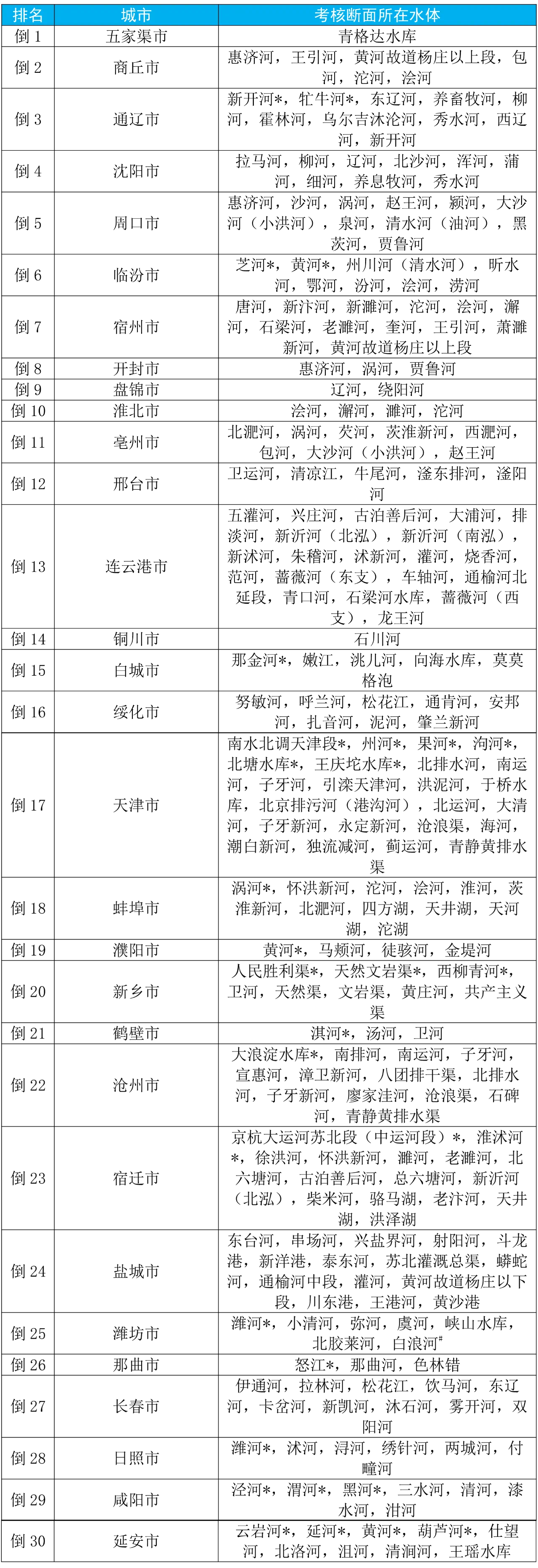 四、地級及以上城市國家地表水考核斷面排名