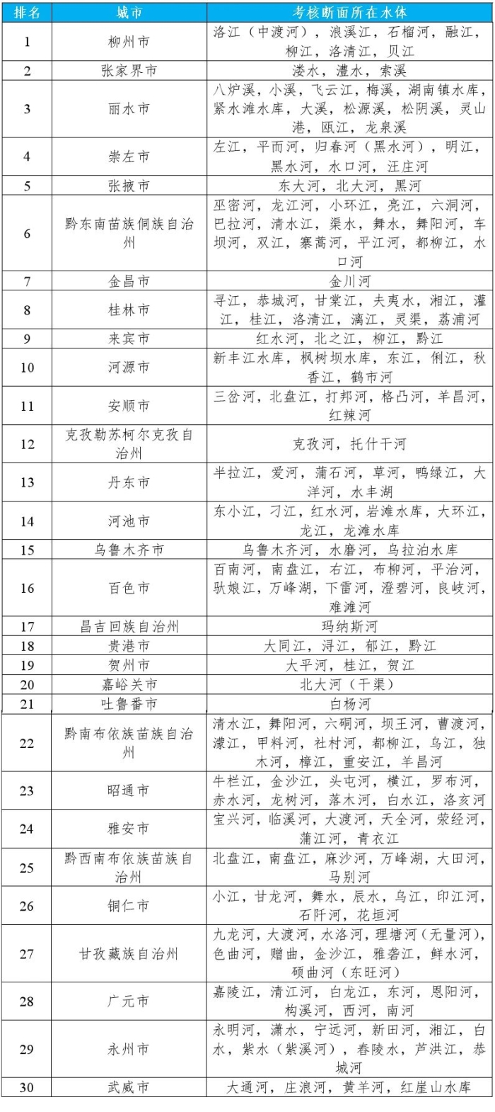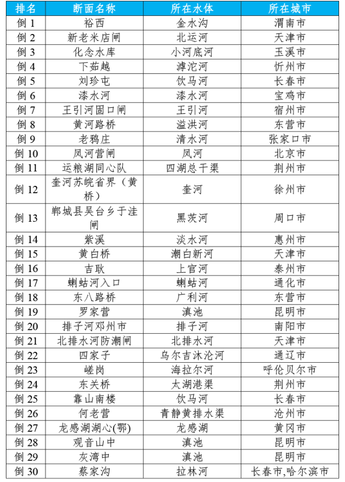 地級及以上城市國家地表水考核斷面排名