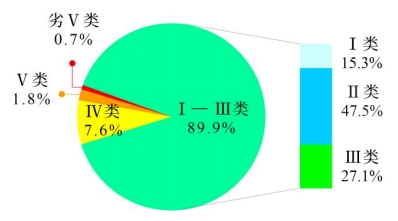 圖1 1—3月全國地表水水質(zhì)類別比例