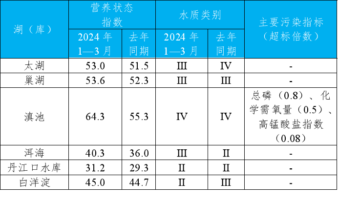 重點湖(庫)水質(zhì)狀況及營養(yǎng)狀態(tài)
