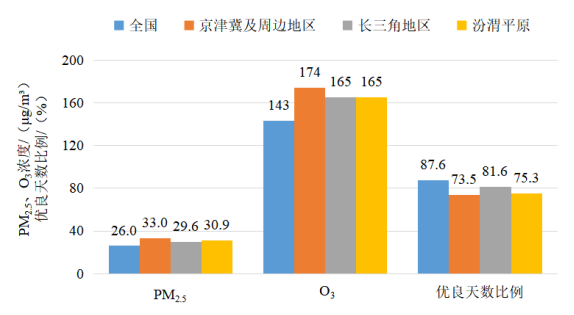圖3 2025年1—9月全國及重點區(qū)域空氣質(zhì)量比較