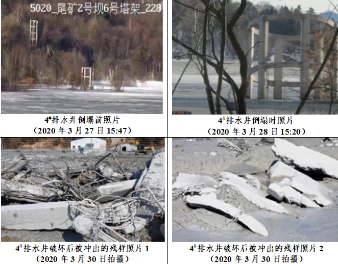 經(jīng)現(xiàn)場調(diào)查取證和檢測分析論證,鹿鳴礦業(yè)尾礦庫4#排水井拱板和井架工程質(zhì)量達不到設計和施工規(guī)范要求,拱板發(fā)生結(jié)構破壞導致尾礦泄漏,井架在不平衡尾礦、水和冰塊的壓力作用下倒塌,進而導致尾礦經(jīng)排水隧洞大量泄漏,是造成事件發(fā)生的直接原因。