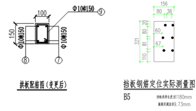 圖2 4#排水井拱板實際配筋與設計配筋圖