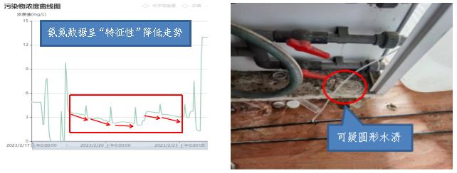 2月24日,調查組對該公司開展現場檢查,經檢查自動監(jiān)測設備,發(fā)現從2月23日21:00左右起,氨氮自動監(jiān)測濃度數據由達標急速變化至超標,疑似人為調整自動監(jiān)測設備運行狀態(tài),且氨氮自動監(jiān)測設備后方采樣管線附近存在一處“圓形水漬”,疑似長時間放置“水瓶”所致。經調取門崗視頻監(jiān)控,發(fā)現23日當晚有車輛進出廠區(qū),與數據異常時段吻合。調查組立即啟動與公安部門聯合辦案機制,公安部門提前介入,經調閱被查扣車輛行車記錄儀,獲取如下通話記錄信息:“老許(總經理)打電話了,讓測實數,把瓶撤了……”經查實,該公司因擔心出水超標,采用調配合格的水樣裝入水瓶代替實際水樣進行檢測,篡改COD、氨氮等污染物自動監(jiān)測數據,并通過超越管線將泥水混合物通過污水排放口排入河道長達40分鐘,最終導致下游國考斷面水質超標報警。
