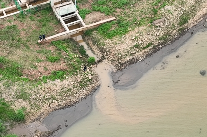 圖1 2024年5月20日,督察組現(xiàn)場(chǎng)督察發(fā)現(xiàn),杞麓湖環(huán)湖調(diào)蓄帶劣Ⅴ類水經(jīng)興義回灌站排入杞麓湖