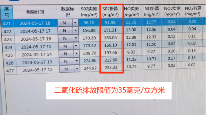 圖2 2024年5月18日,督察組現(xiàn)場督察發(fā)現(xiàn),婁底市冷水江鋼鐵有限責任公司高爐煤氣發(fā)電鍋爐二氧化硫超標排放
