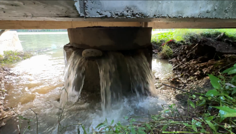 圖4 2024年10月20日,督察組現(xiàn)場(chǎng)督察發(fā)現(xiàn),廣元南河國(guó)家濕地公園內(nèi)生活污水直排
