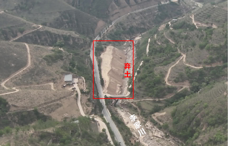 圖3 2025年5月30日,督察組現(xiàn)場督察發(fā)現(xiàn),榆林市清澗縣鴻鑫建材有限公司在李家川河道內(nèi)傾倒棄土。