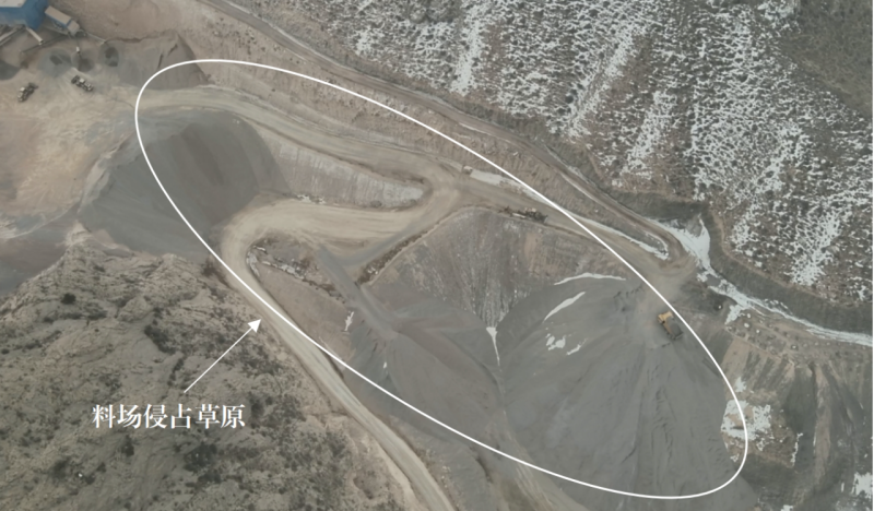 圖1 2025年2月20日,督察組暗查發(fā)現(xiàn),明巨電石公司在礦區(qū)范圍外設(shè)置物料、廢渣堆放場(chǎng)所等,侵占草原共約90畝。